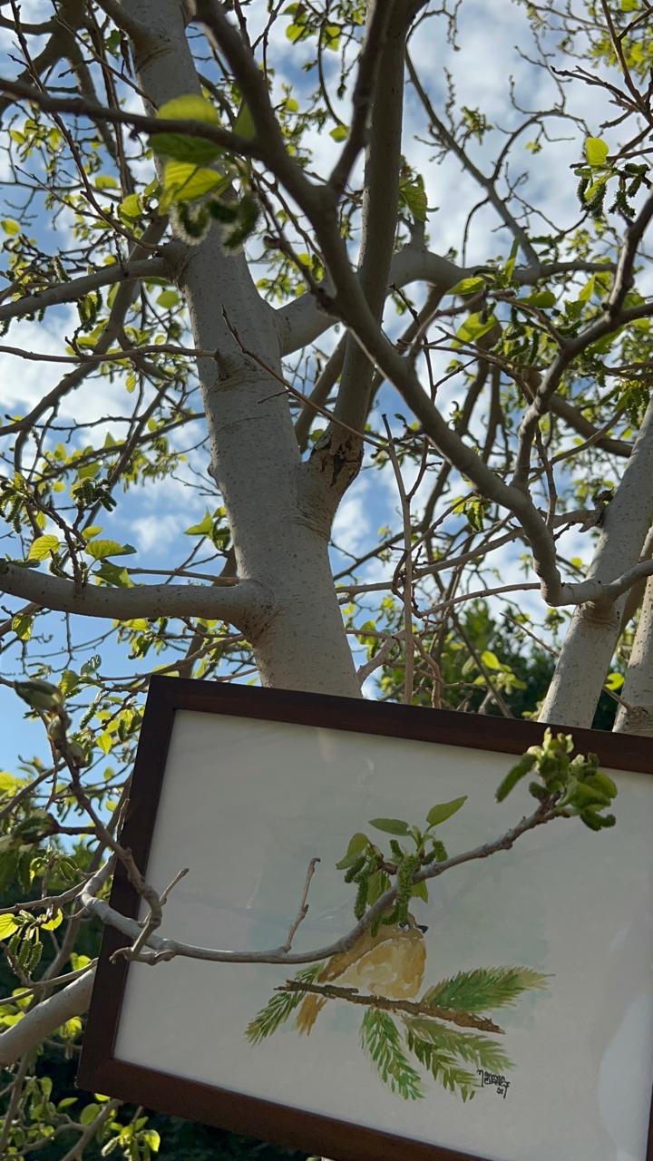 Watercolor portrayal of a hand-painted bird framed in a handmade wooden frame